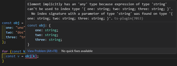 k와 obj 객체의 키 타입이 서로 다르게 추론되어 오류가 발생한 것이다.